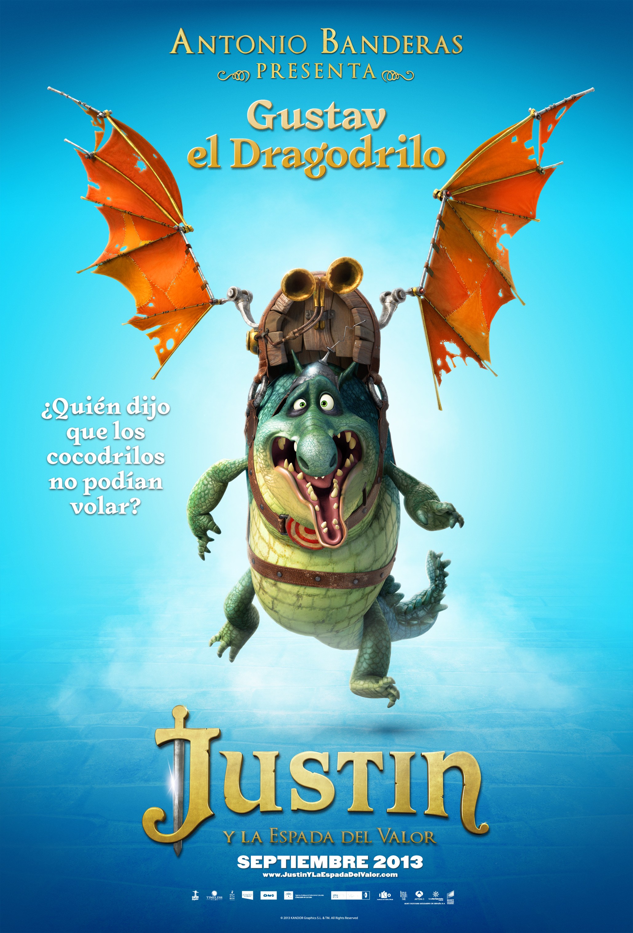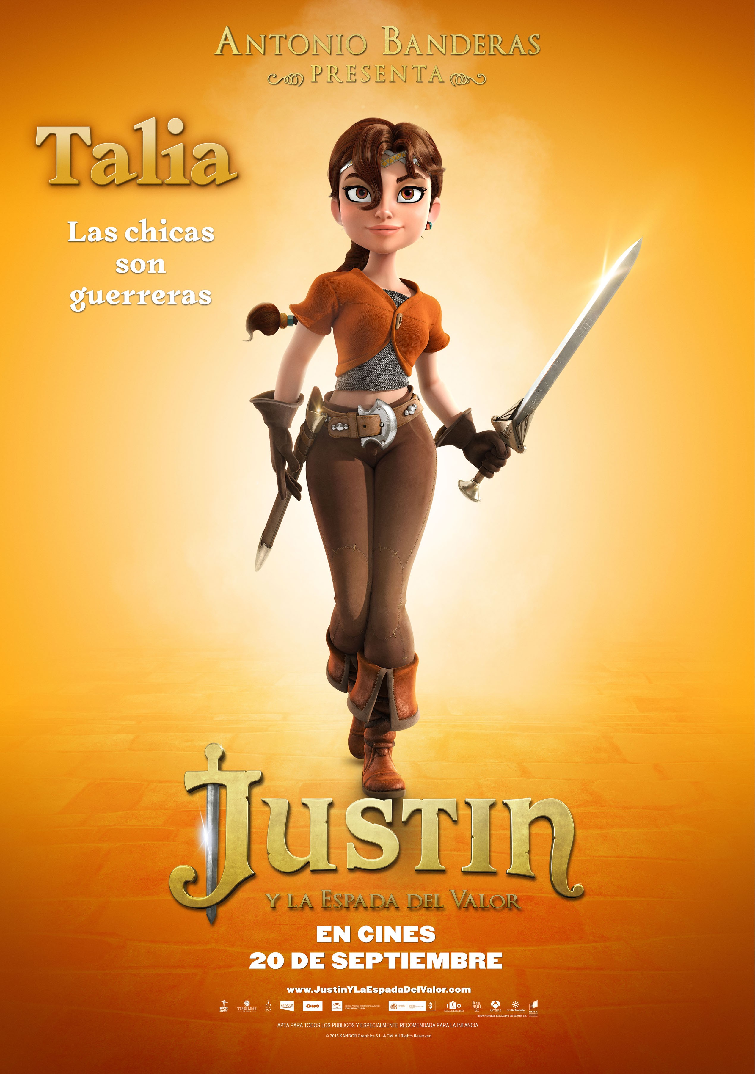 SIR ANTOINE (voz de Antonio Banderas),es un gran caballero con una brillante armadura, pero no es oro todo lo que reluce. Y aunque tenga fuerza, carisma y físico con el que haya llegado a convencer a otros, Justin y Talía saben que es un farsante. Lo que realmente no saben el resto es que Sir Antoine es un simple empleado del servicio de la corte que pule armaduras.